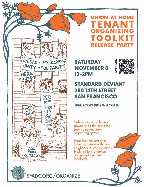 SFCLT and the Anti-Displacement Coalition are thrilled to invite you to Union at Home: Tenant Organizing Toolkit Release Party, a celebration and launch event for the Union at Home Organizing Toolkit — a new resource designed to strengthen tenant power and support resident-led organizing efforts across San Francisco.